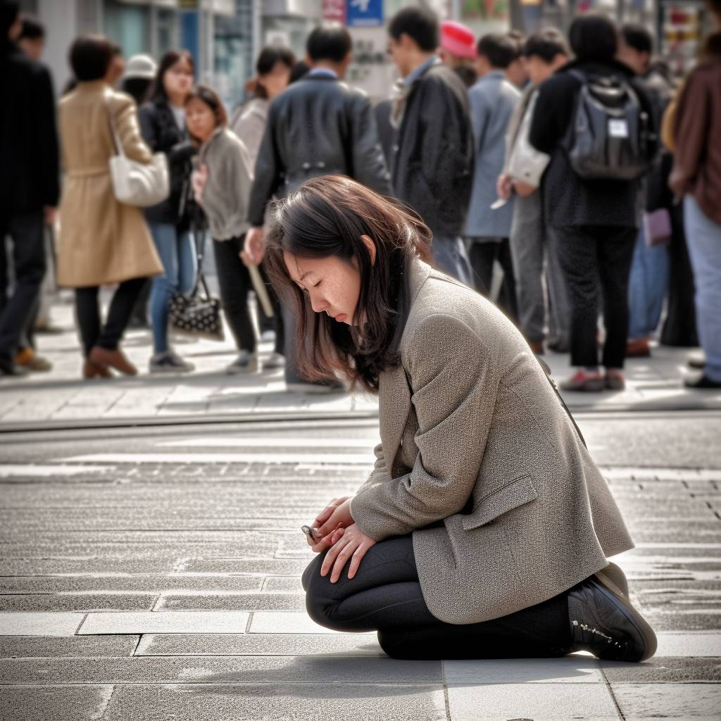 今日のテーマ 新宿の街中で、土下座する女性